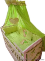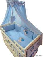 - Постельный набор - 10 элементов (пододеяльник, наволочка, простынь, одеяло, подушка, защитные бортики с 4-х сторон, карман, балдахин, подвеска сердечко, бант).