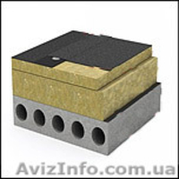 «Техноруф» В-применяется в качестве верхнего теплоизоляционного слоя в покрытиях из железобетона или металлического профнастила с кровельным покрытием из рулонных, мастичных материалов, ПВХ или ТПО мембран...(плоские кровли):