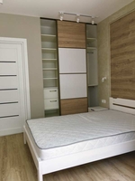 В 40 кв. м уместились: большая светлая спальня с рабочей зоной и выделенными местами для 2-х встроенных шкафов, а также кухня-студия с зоной отдыха.