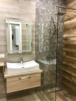 В ванной комнате теплые полы с программируемым терморегулятором.