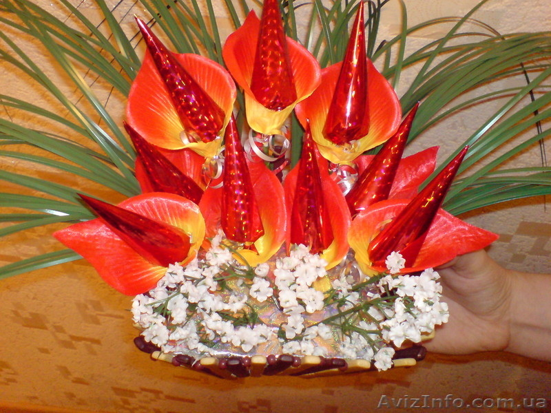 Букеты из конфет!В наличии и под заказ!Оригинальный, незабываемый и ВКУСНЫЙ подарок, который принесёт радость Вашим родным и близким, друзьям, коллегам по работе......Очень ПОЛЕЗНЫЙ подарок, который доставит НАСТОЯЩЕЕ УДОВОЛЬСТВИЕ!Размер букета, колличество конфет, СТОИМОСТЬ--ОБГОВАРИВАЕТСЯ!