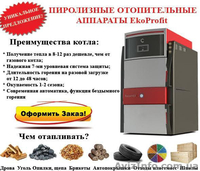 Производимые компанией аппараты EkoProfit работают на запатентованной технологии «высокотемпературного пиролиза», в котором в качестве основного топлива можно использовать практически любые виды твердого топлива, горючих отходов и мусора.